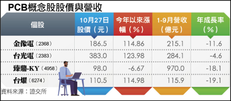 PCB概念股股價與營收