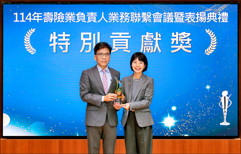 業界唯一!凱基人壽「花蓮光復鄉援助志工團體保險」創舉,公私協力回應社會需求,由金管會彭金隆主委頒發「特別貢獻獎」表揚,凱基人壽郭瑜玲總經理代表受獎。(凱基人壽提供)業界唯一!凱基人壽「花蓮光復鄉援助志工團體保險」創舉,公私協力回應社會需求,由金管會彭金隆主委頒發「特別貢獻獎」表揚,凱基人壽郭瑜玲總經理代表受獎。(凱基人壽提供)