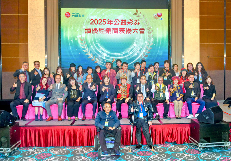 台灣彩券公司昨舉辦「2025年公益彩券績優經銷商表揚大會」,共表揚157位彩券績優經銷商。(台彩提供)