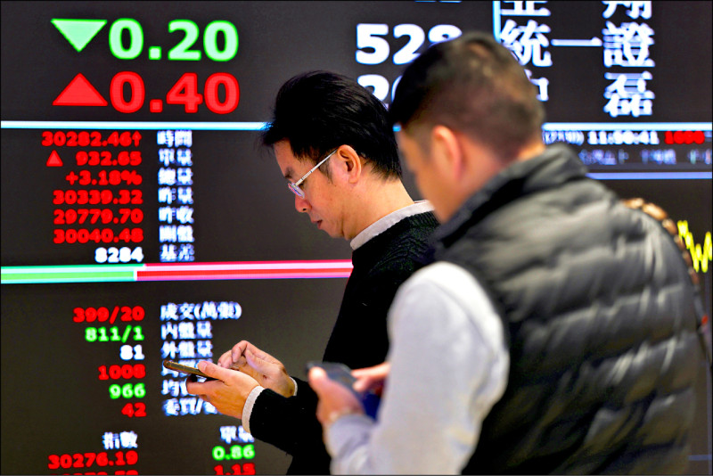 台股在台積電等電子權值股帶動下狂飆,加權指數上漲755.23點,以30105.04點作收,創下新高。(歐新社)