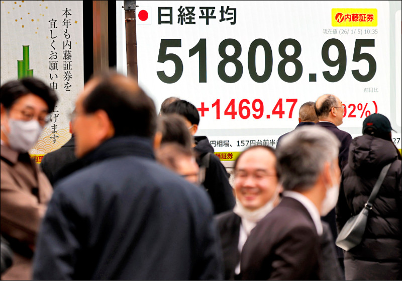 亞股昨飆漲,日經二二五勁揚3%,突破5萬1千點,直逼兩個月前創下的新高紀錄。(歐新社)