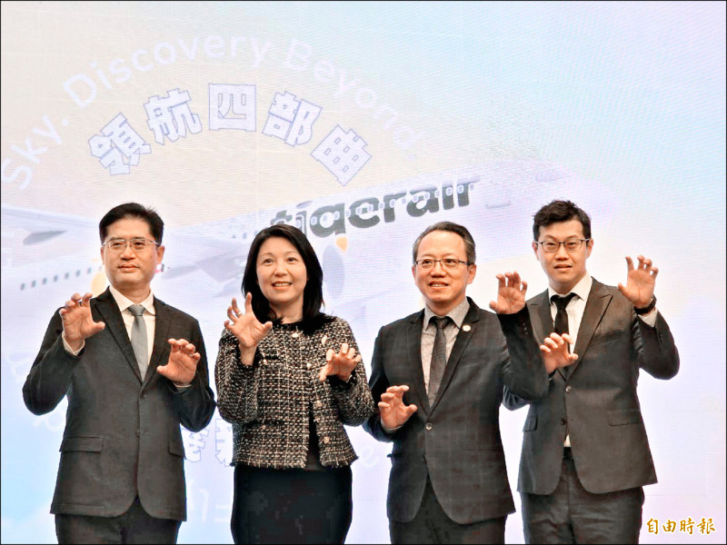 台灣虎航董事長黃世惠(左二)表示,虎航機隊擴充後,「廉航也要吃轉機市場」,將瞄準日本、東南亞雙向轉機需求,打造台北為廉航轉機樞紐。