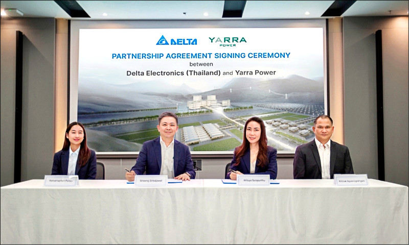 台達電攜手泰國潔淨能源業者Yarra Power簽署合作備忘錄,聚焦能源與資通訊基礎設施整合方案,搶攻當地對高效率與高可靠度技術的需求。(台達電提供)