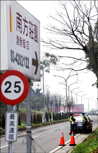 兩岸經濟合作委員會第一次例會昨日正式展開,警方在進入開會飯店路口設置崗哨以防止意外衝突。(記者王敏為攝)