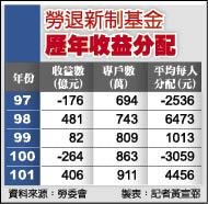 勞退新制基金歷年收益分配