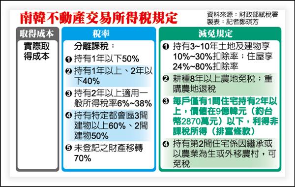 此外,長期持有、自用住宅優惠也有共識,但財政部原規劃僅一戶自用住宅免稅,現在考慮訂定「排富條款」。張盛和表示,是否要排富、排富門檻等,正在蒐集各國資料;南韓的做法是有排富,僅有一戶住宅持有兩年以上、價值九億韓元(約台幣二八七○萬元)以下,交易所得不課稅。